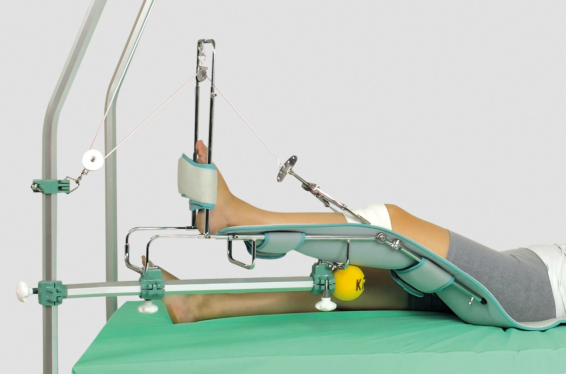L’attelle 2060 ou attelle de « Boehler » est une attelle de traction du membre inférieur permettant une grande stabilité et rigueur de positionnement du membre aussi bien dans l’axe du corps qu’avec une abduction de hanche. Etant suspendue au cadre complet elle facilite les soins de siège et le changement de la literie car rien ne touche le matelas. Livré avec un tube plié à mâchoire fixe de 70cm. Nous recommandons cette attelle pour de longue durée d’immobilisation.