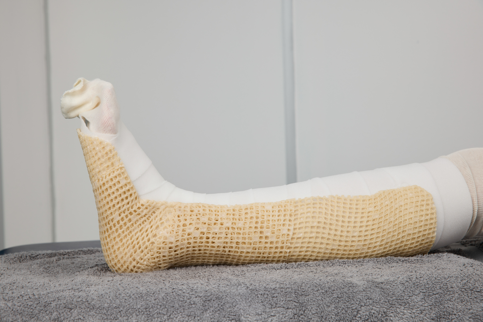 Il est important de commencer par la cheville afin qu’il s’adapte parfaitement au talon. - Ensuite, moulez-le autour du patient en vous assurant que le talon est bien ajusté.