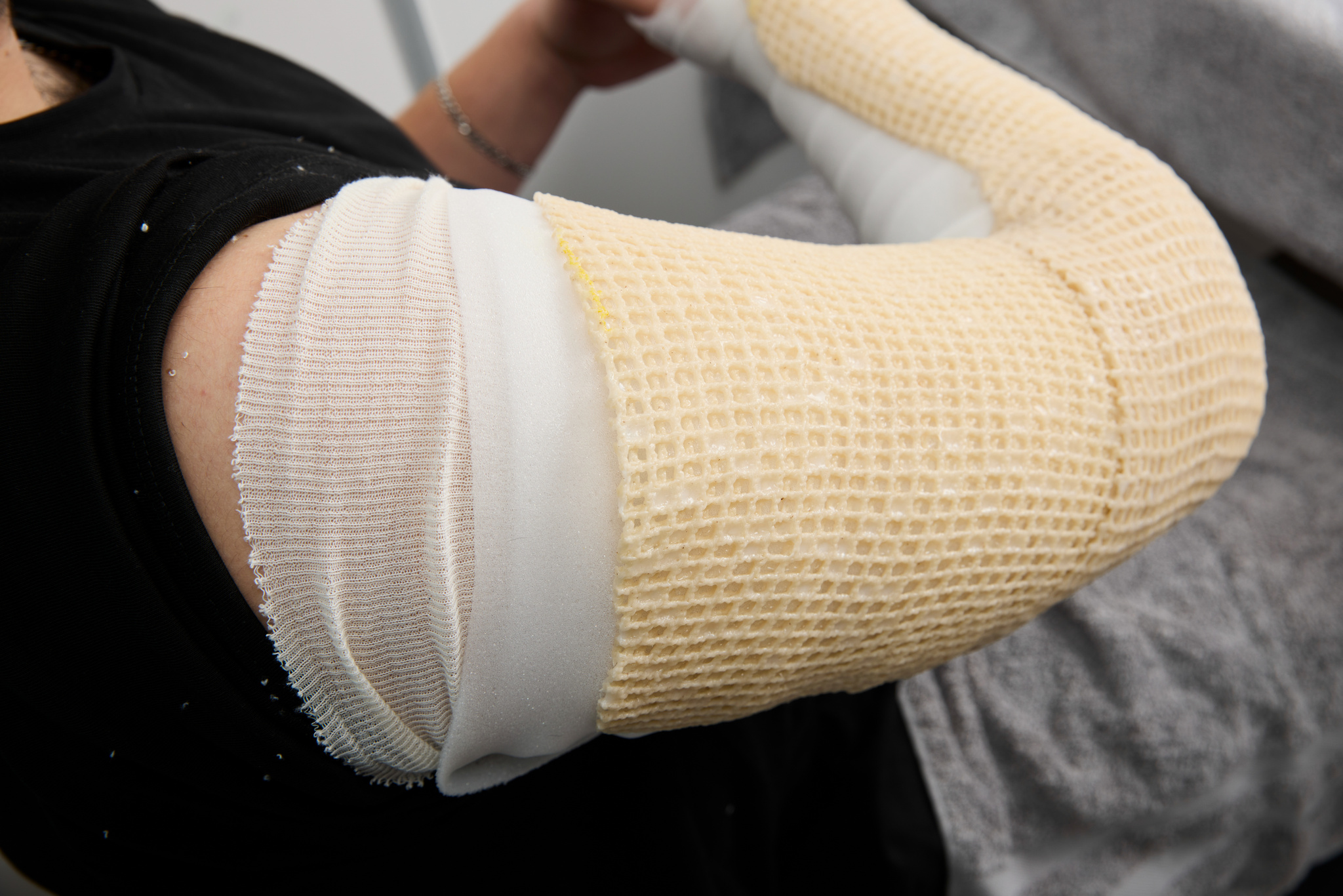 Sa structure ouverte assure une aération maximale, tout en permettant au matériau de s’étirer facilement et d’épouser parfaitement la forme du membre, pour un ajustement précis et confortable.