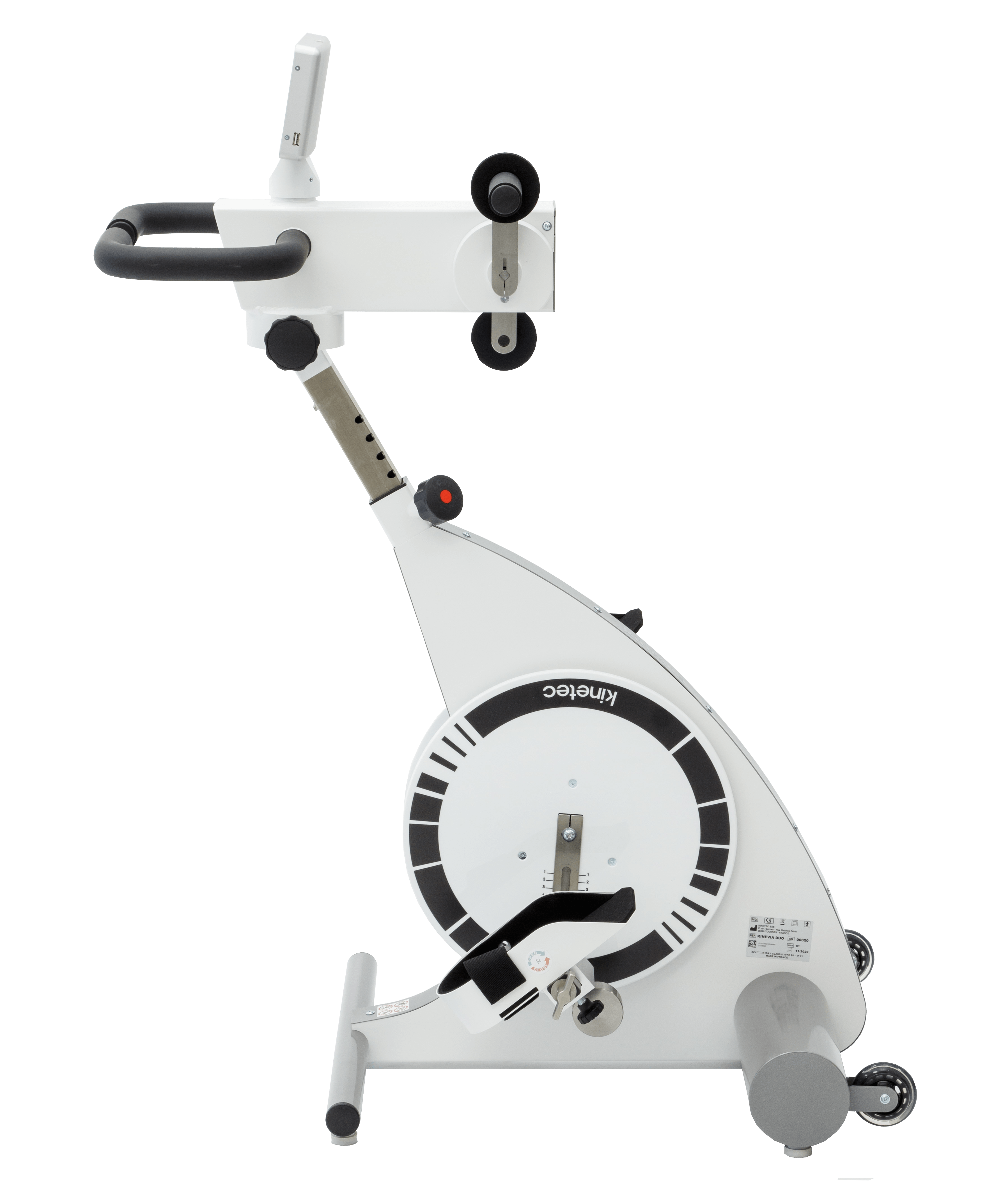L‘entraîneur thérapeutique motorisé Kinetec Kinevia Duo™ dispose d’un système d’entraînement indépendant pour les jambes et pour les bras ce qui permet une rééducation du corps entier. L’ingénieux mécanisme de rotation de l’entraîneur des bras fournira un excellent confort à l’utilisateur durant le travail des bras ou des jambes.